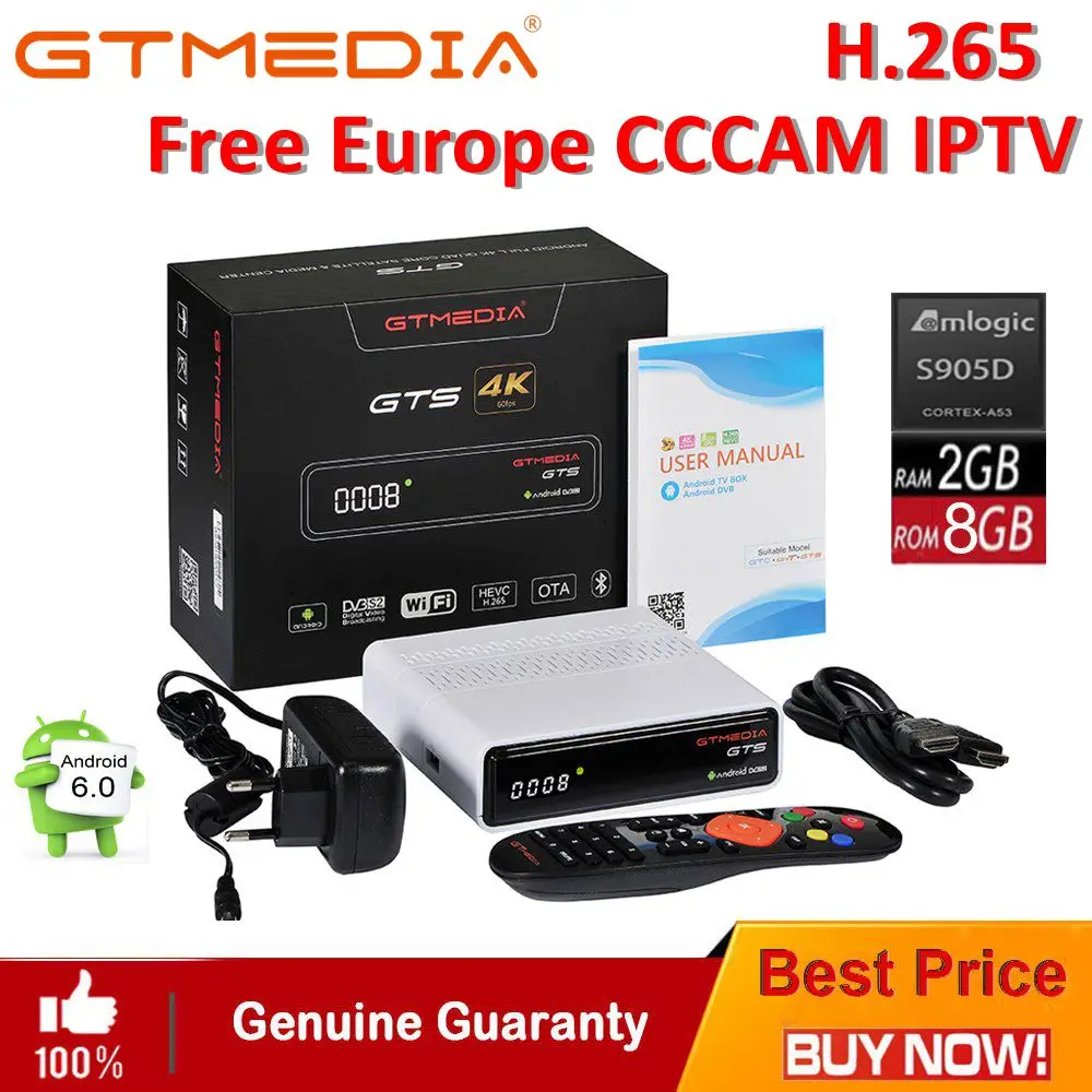 - Product name : IPTV CCcam GTmedia GTS Satellite Receiver Android6.0 TV BOX+DVB-S/S2 Smart TV BOX Built-In WiFi HD
