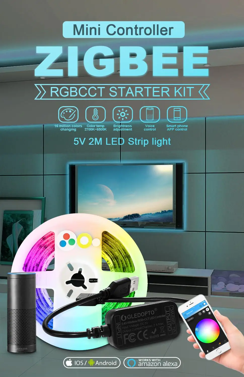 - Product name : ZigBee DC5V MINI LED RGBCCT controller smart TV strip light tape 5V Usb controller By Alexa Echo pl